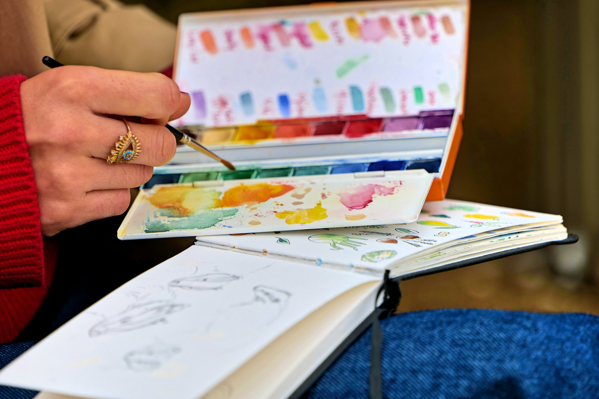 Elle partage régulièrement ses créations sur Instagram, où elle publie des extraits de ses carnets, croquis urbains, paysages ou scènes de la vie quotidienne.